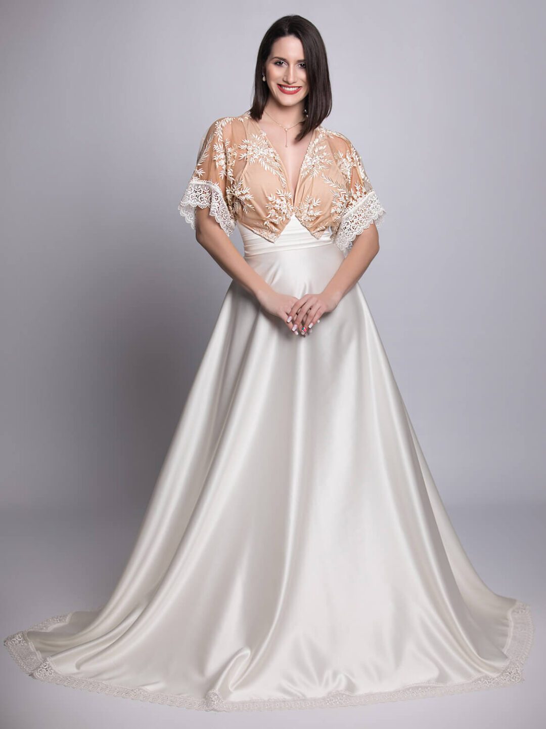 Ρομαντικό vintage νυφικό με εντυπωσιακή φούστα από κρεπ σατέν σε άλφα γραμμή