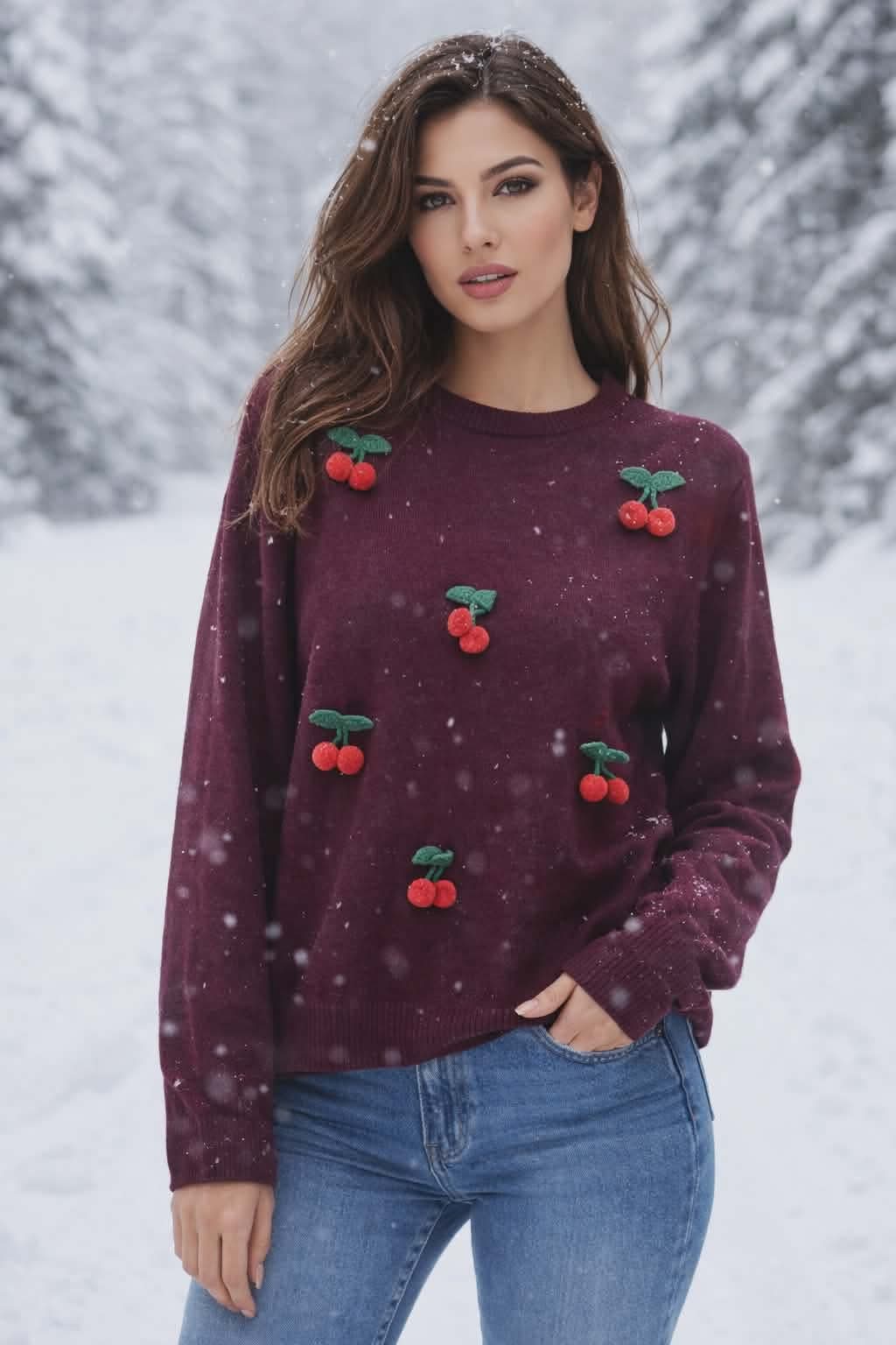 Πλεκτή μπλούζα με κερασάκια
