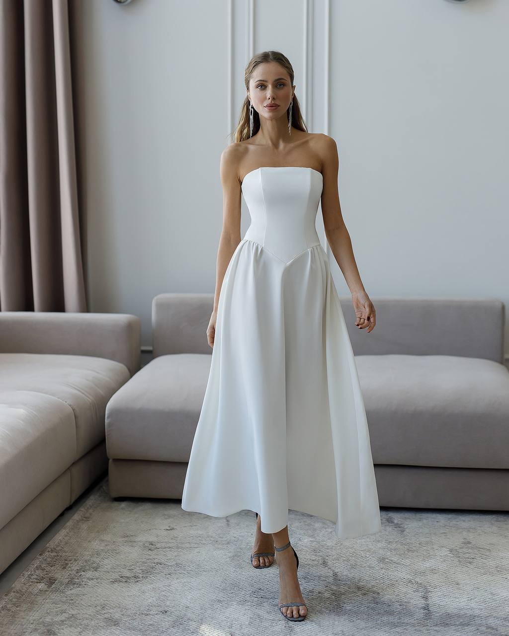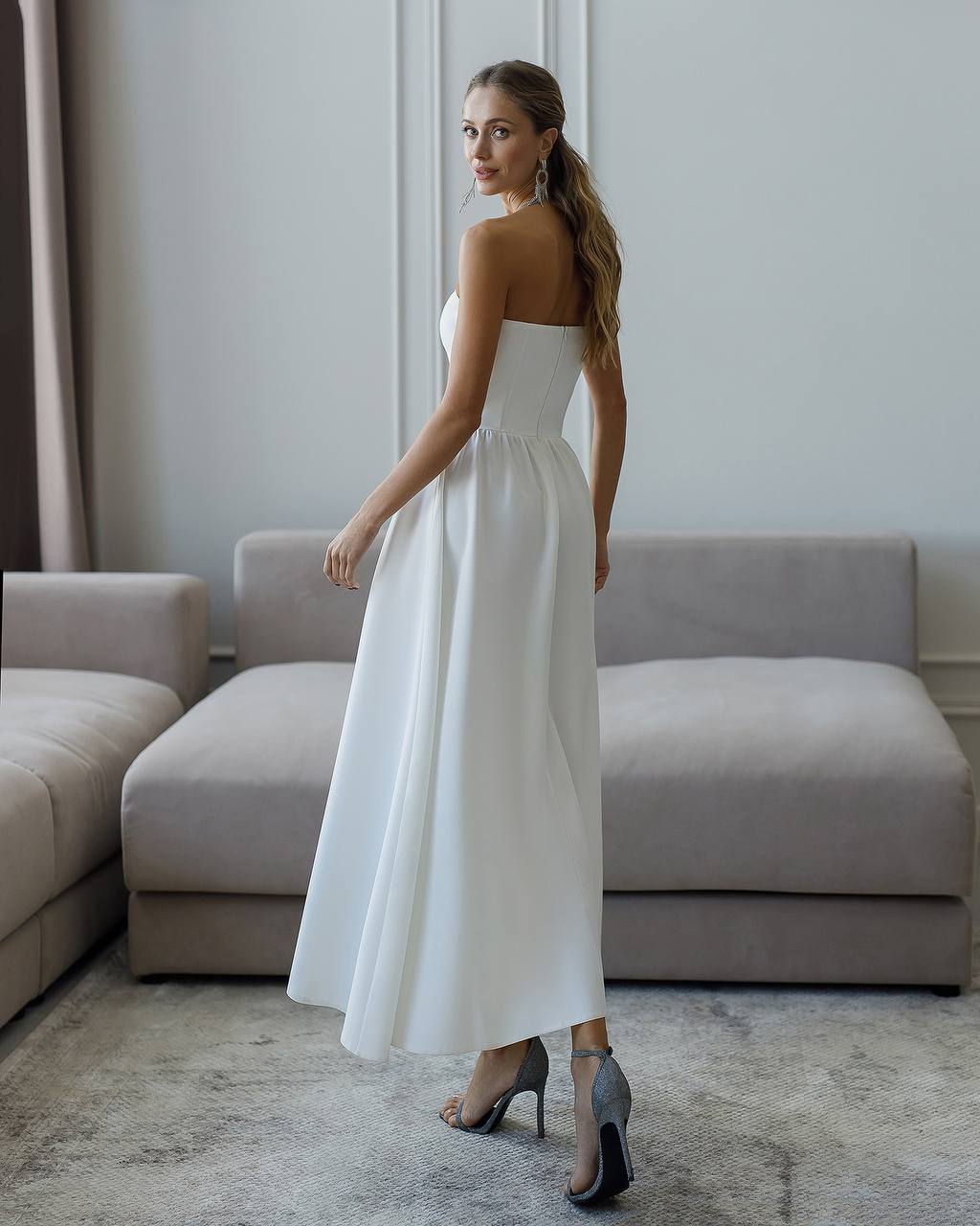 Εντυπωσιακό midi στράπλες νυφικό