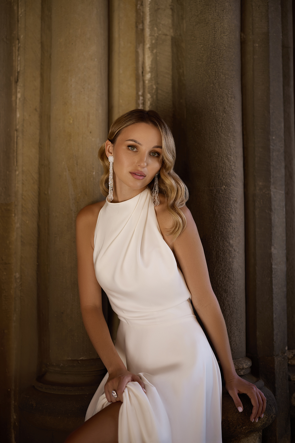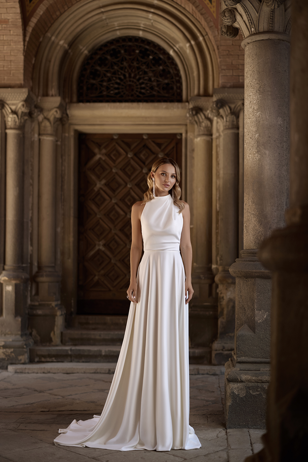 Σατέν νυφικό σε άλφα γραμμή