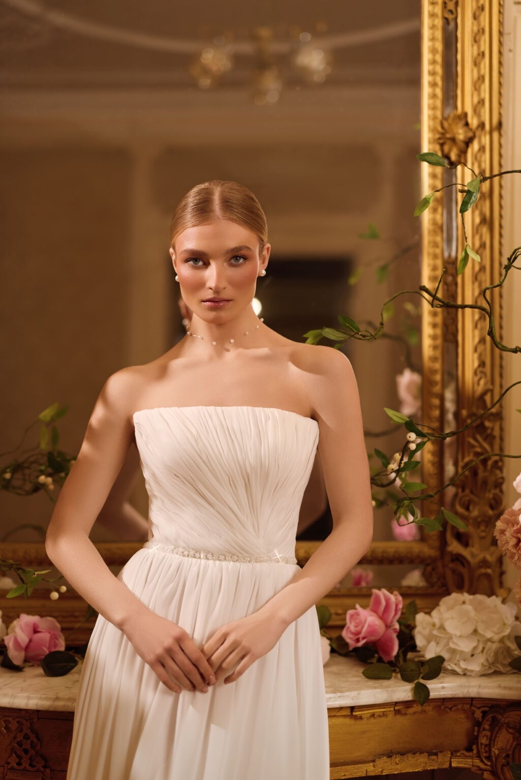 Νυφικό φόρεμα Στράπλες με Πέρλες