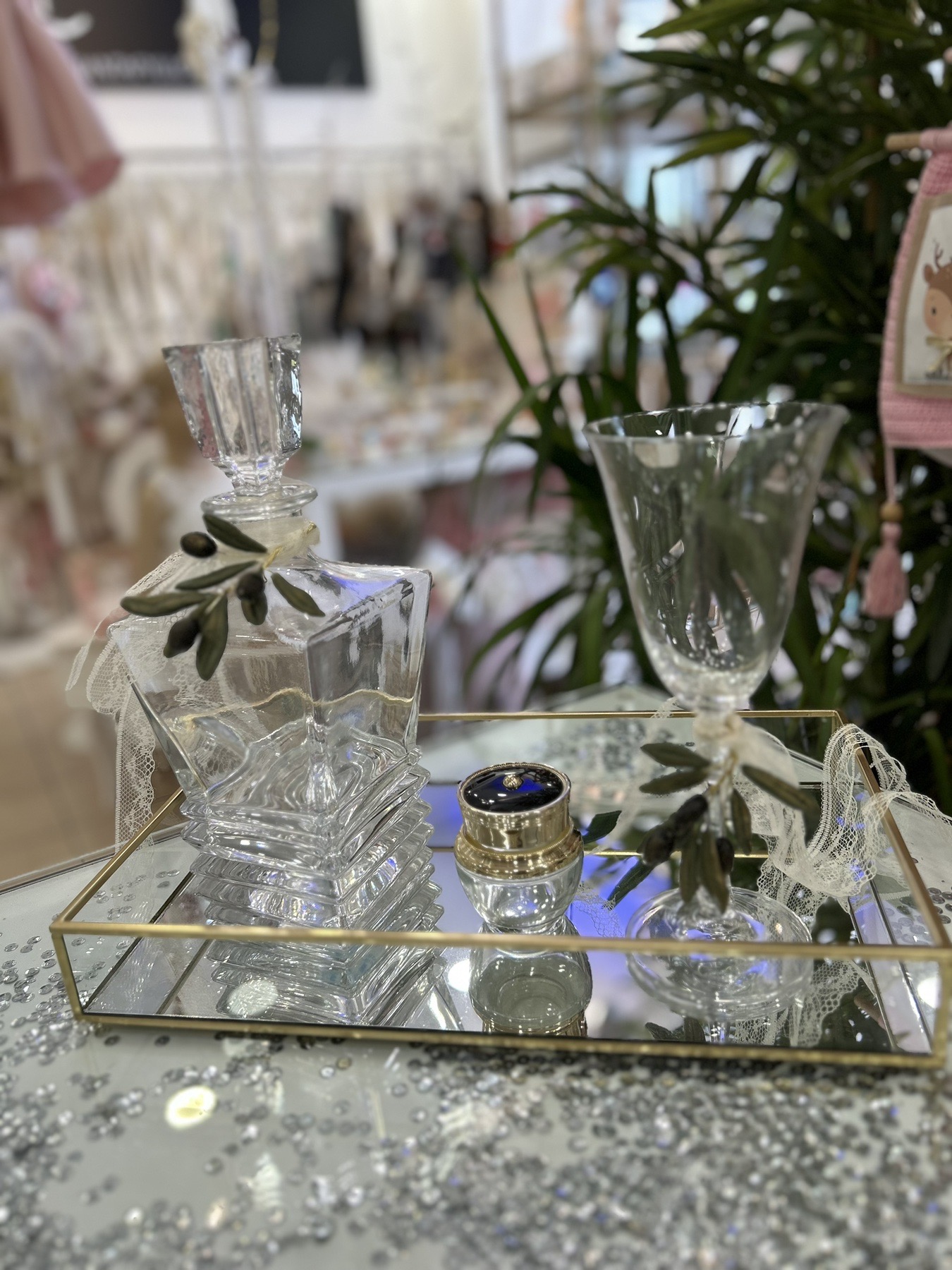 Μοναδικά σετ κουμπάρου από κρύσταλλο Βοημίας, διακοσμημένα με επιχρυσωμένα γούρια Tresento
