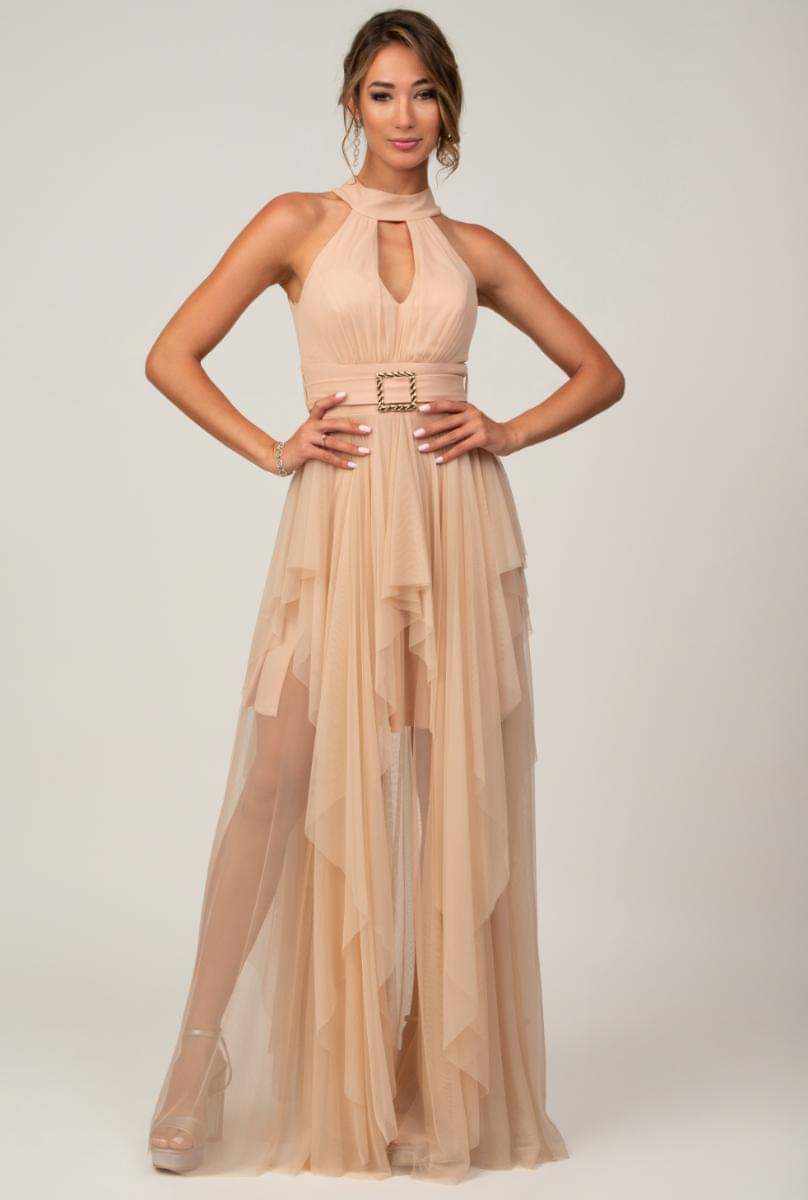 Μaxi φόρεμα με πιέτες και τούλι