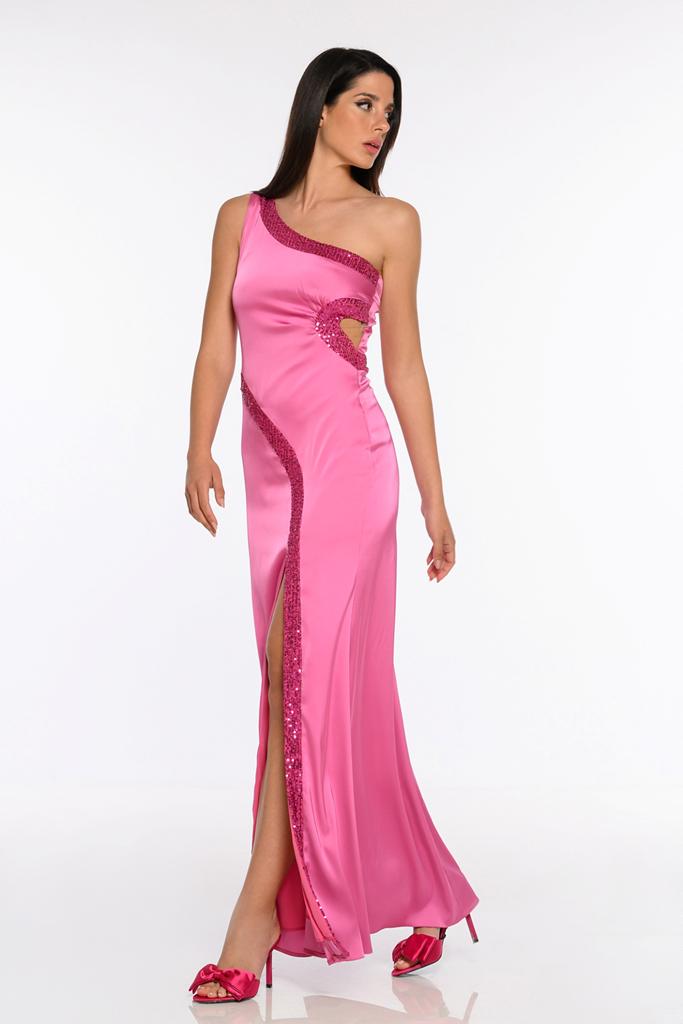 Maxi φόρεμα με έναν ώμο και γκλίτερ