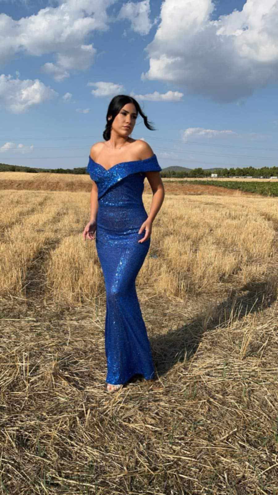 Maxi φόρεμα παγιέτα με ανοιχτούς ώμους