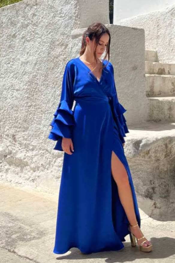 Maxi κρουαζέ σατέν φόρεμα