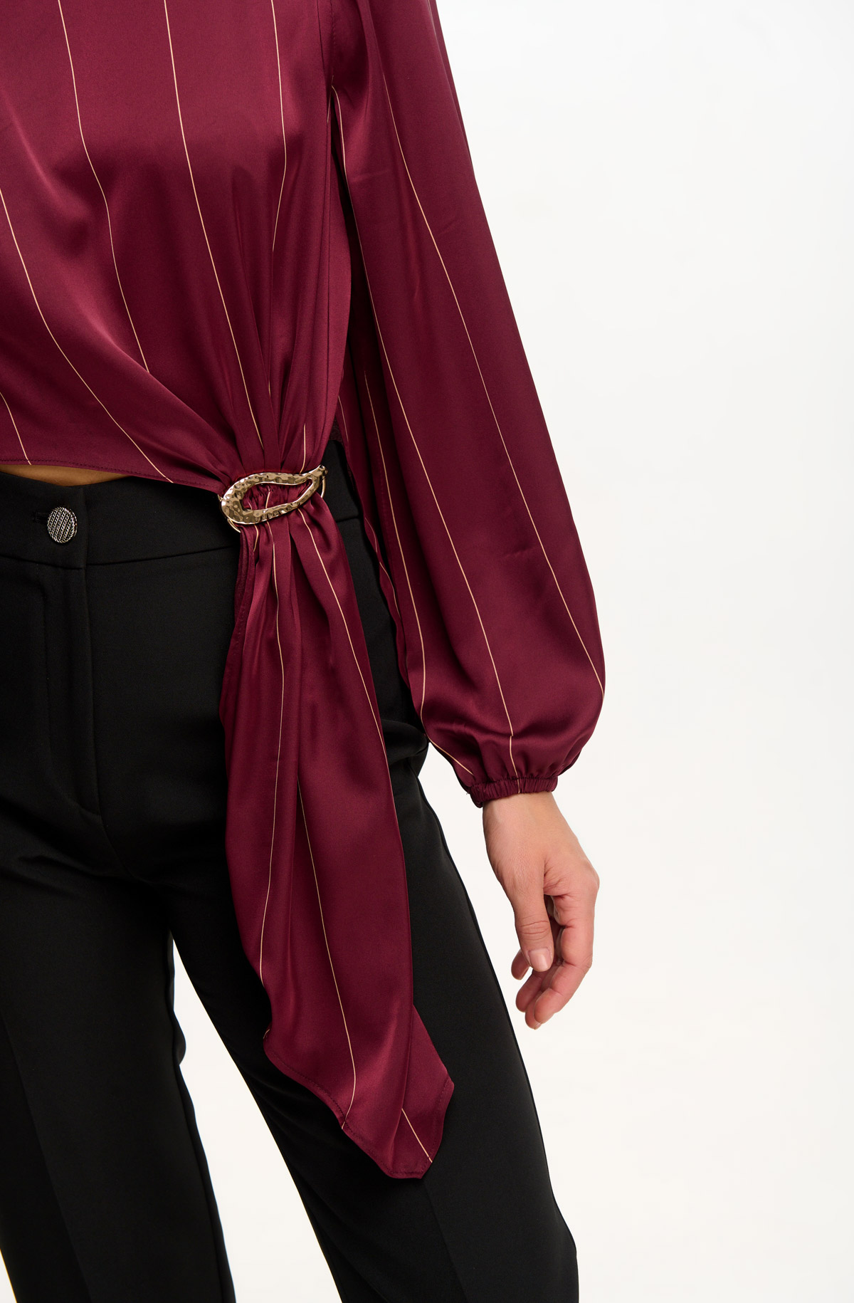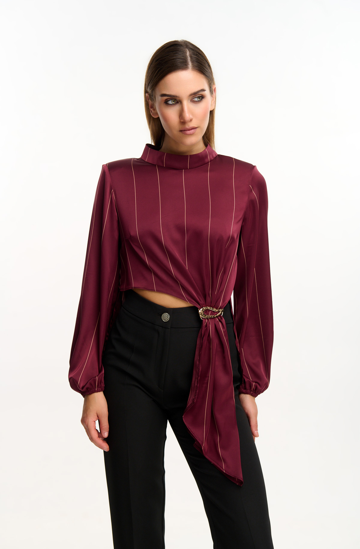 Γυναικεία μπλούζα με μανίκια και λεπτές κάθετες ρίγες