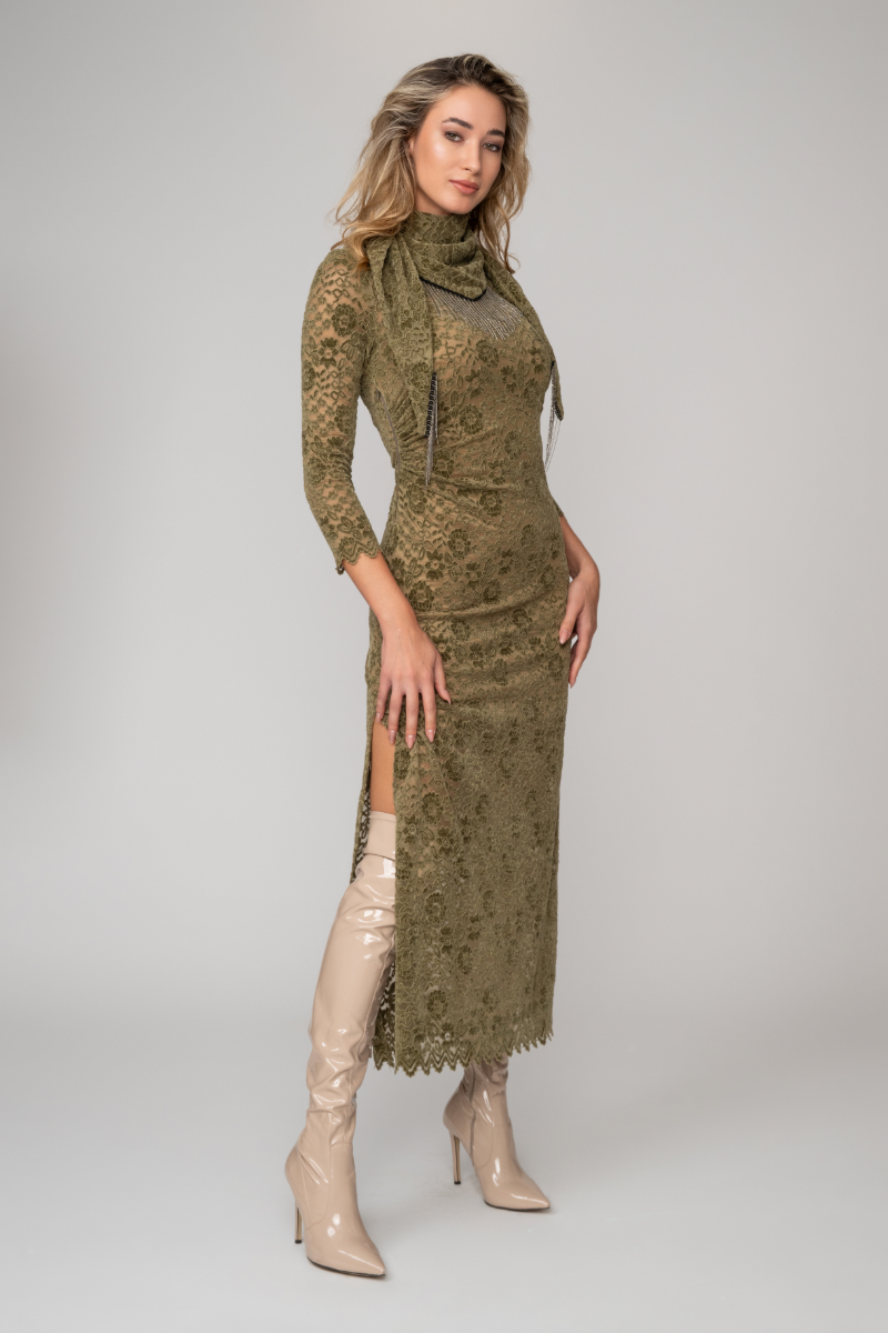 Midi γυναικείο φόρεμα από βελούδινη δαντέλα