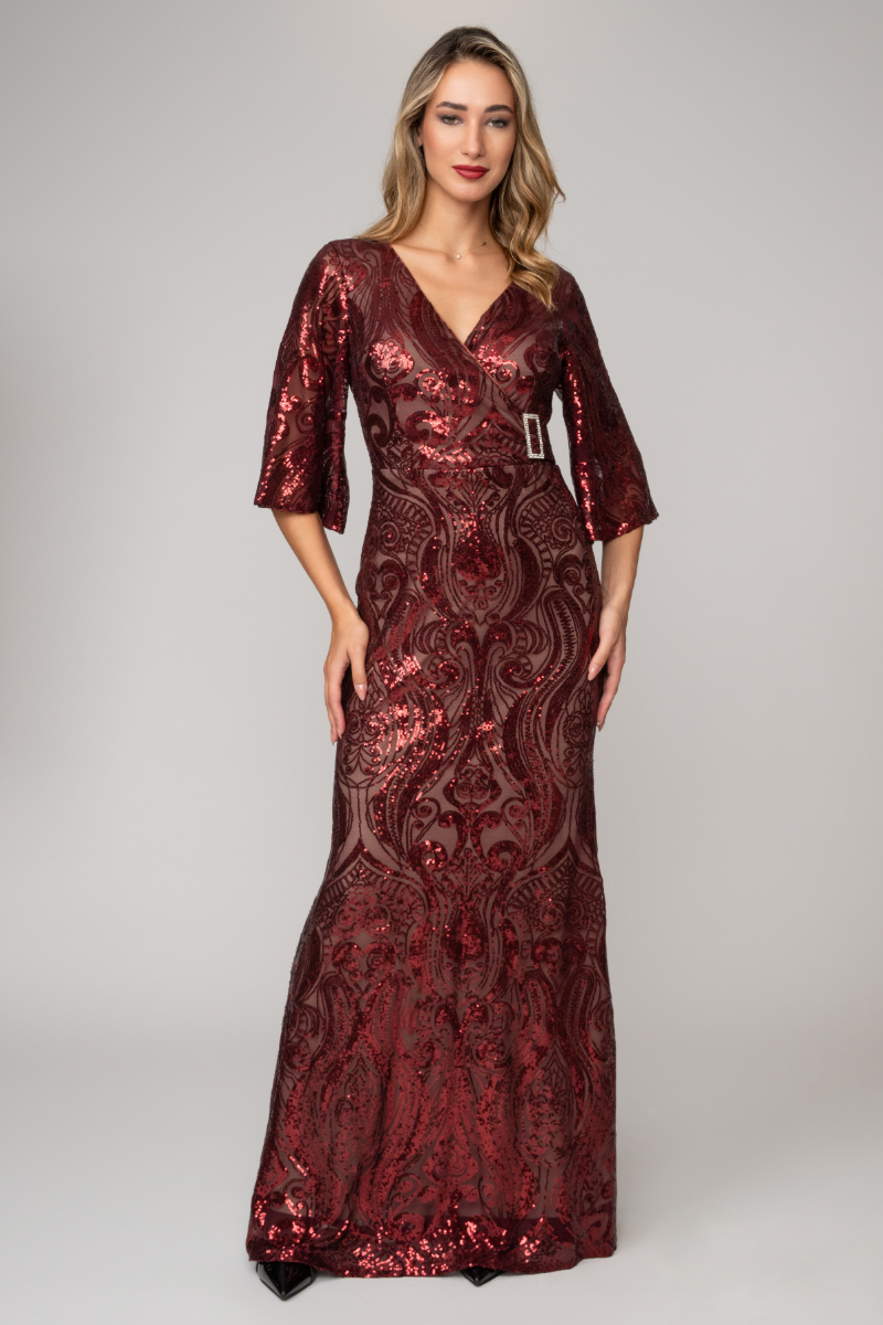 Μακρύ φόρεμα με παγιέτα και σκίσιμο
