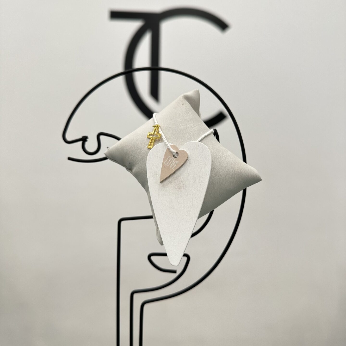 Μαρτυρικά για βάπτιση ξύλινη καρδιά και χρυσό σταυρό