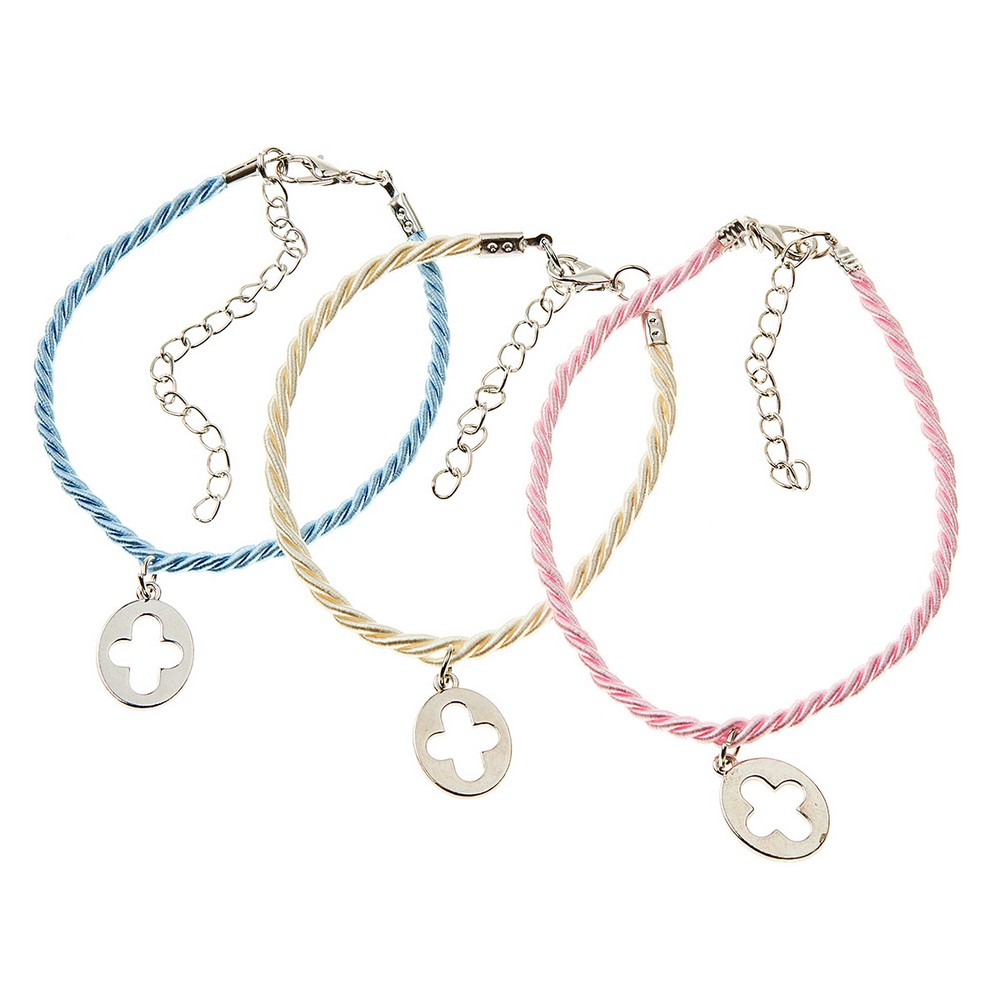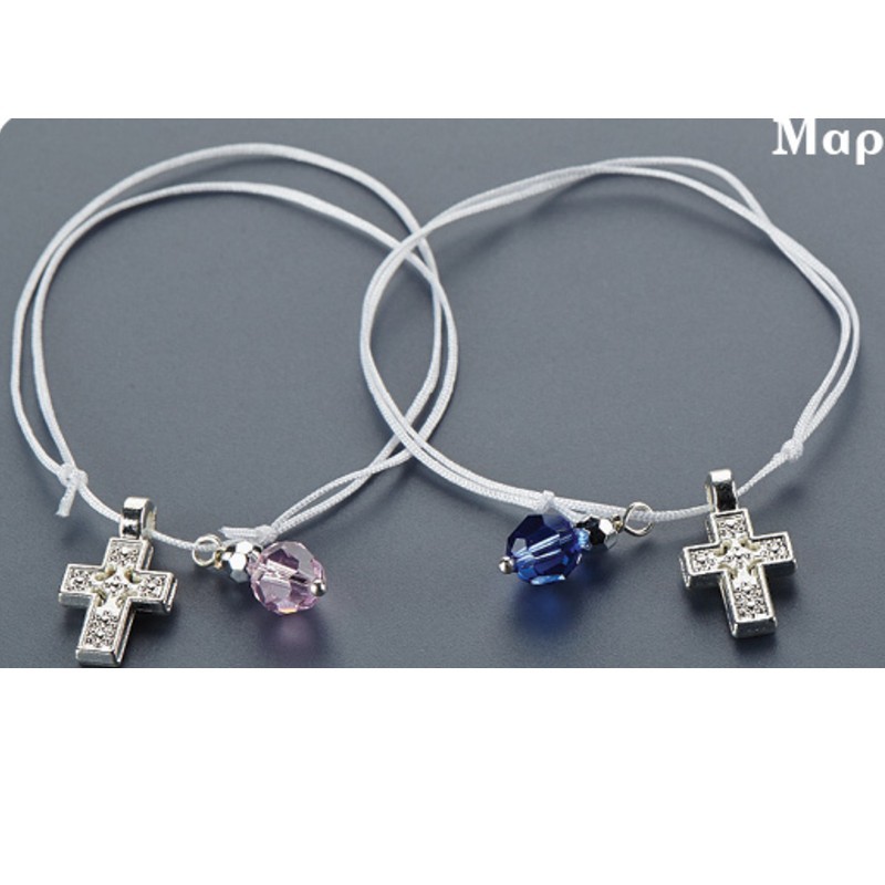 Μαρτυρικά βραχιολάκια για βάπτιση με ασημή σταυρό