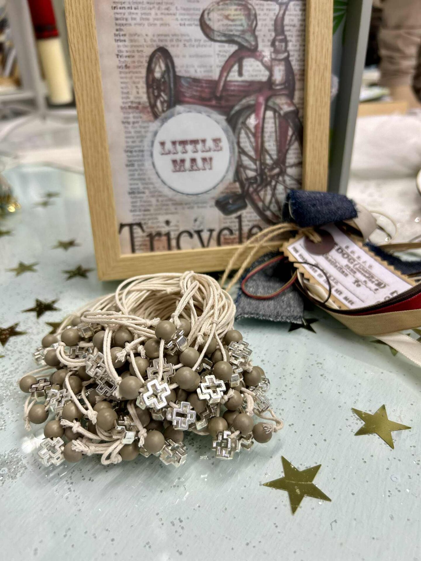 Μαρτυρικά βραχιολάκια για βάπτιση με ιδιαίτερο σταυρό και χάντρες