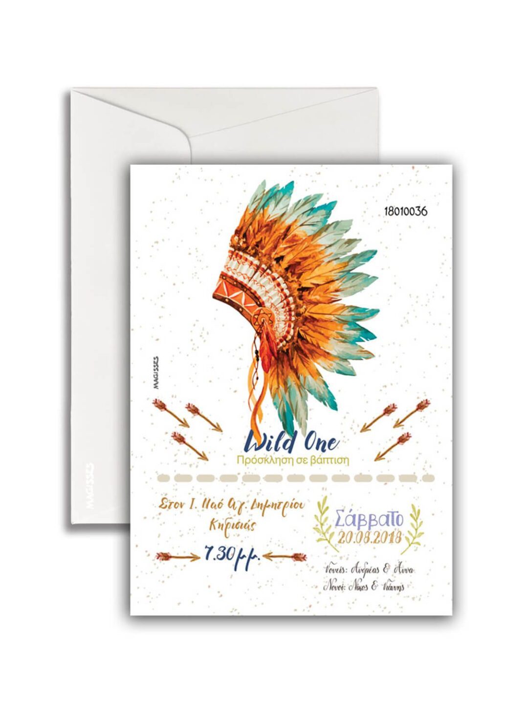 Προσκλητήριο Βάπτισης κατακόρυφο με θέμα τον Ινδιάνο