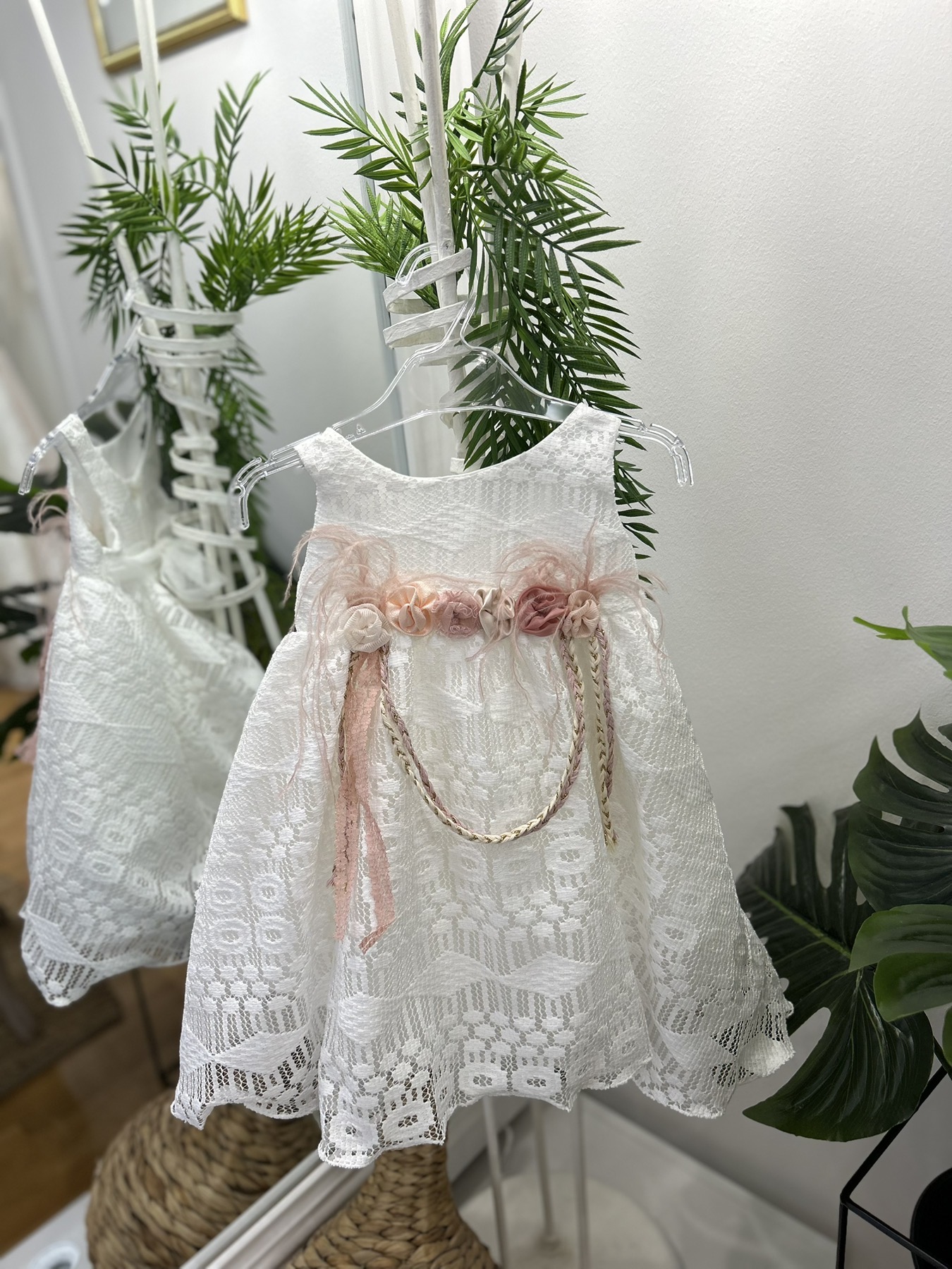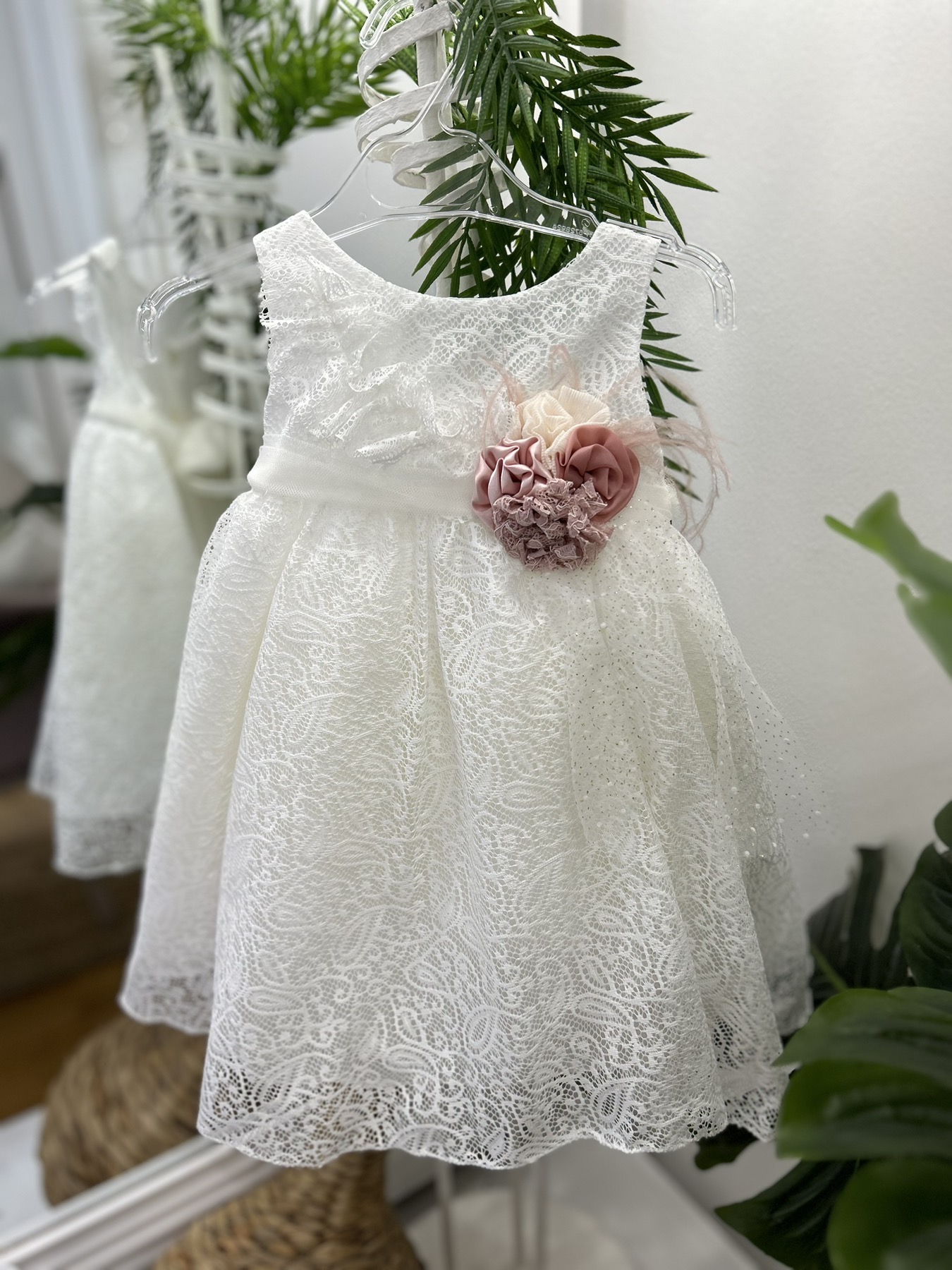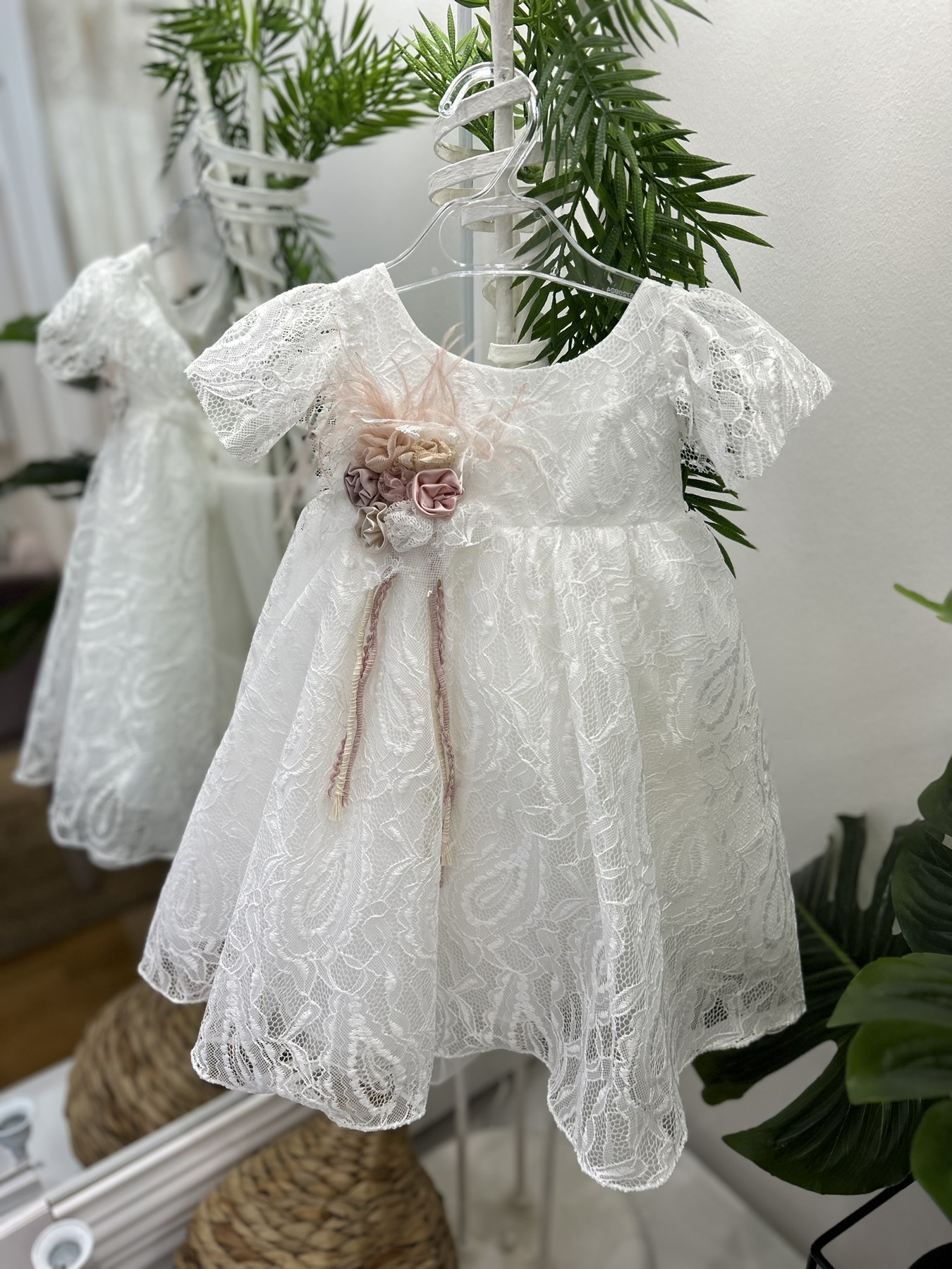 Βαπτιστικό φόρεμα από δαντέλα και ροζ λουλούδια