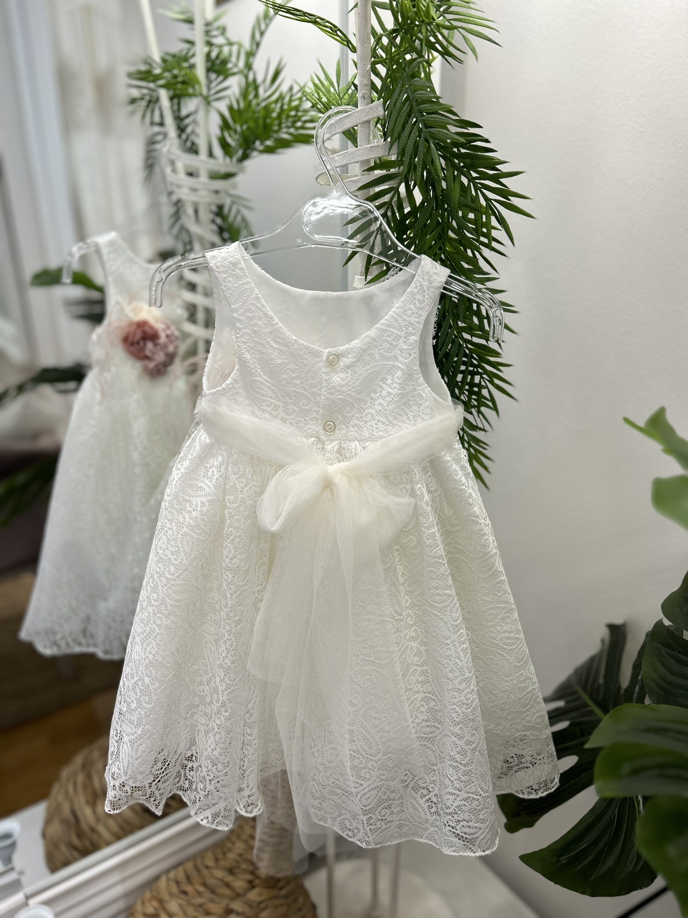 Ρομαντικό βαπτιστικό φόρεμα με διαφάνεια μπροστά