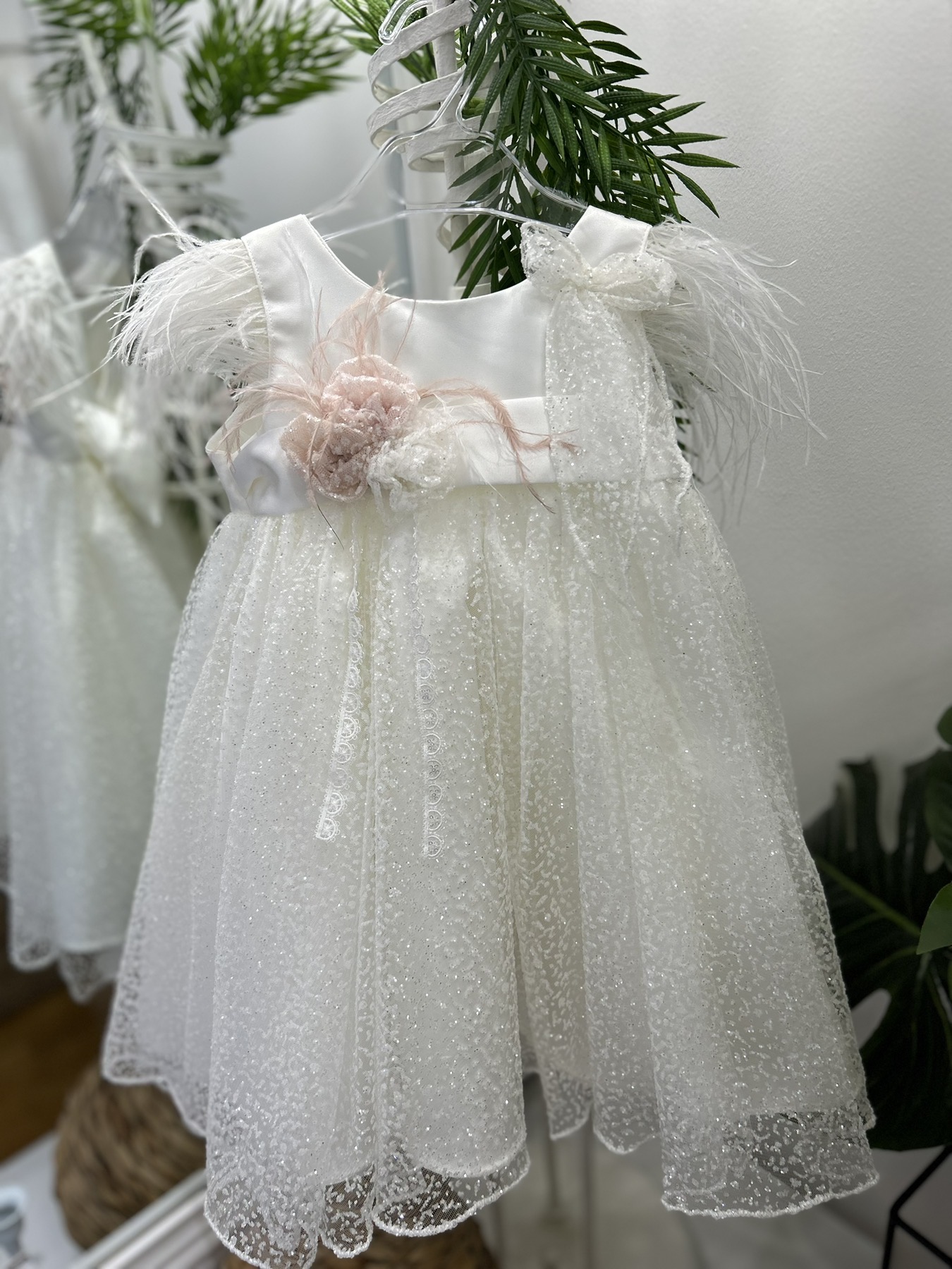 Βαπτιστικό φόρεμα με glitter και φτερά
