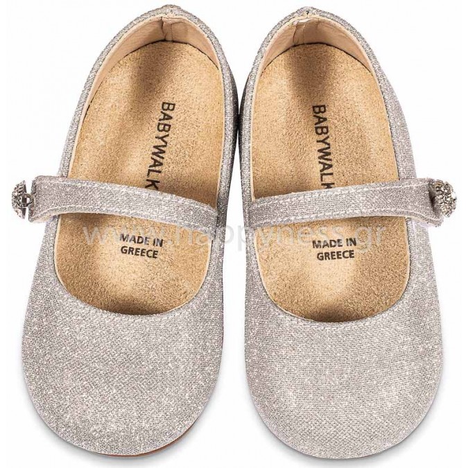 Βαπτιστικό πέδιλο για κορίτσι σε λευκό με ασημί