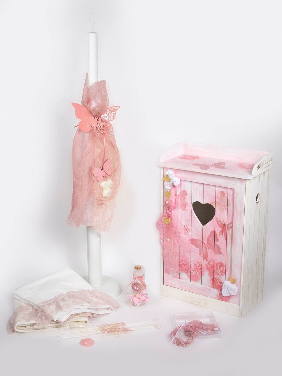 Μαρτυρικά βραχιολάκια για βάπτιση με ασημή σταυρό. Σε χρώματα ροζ, εκρού   και σιέλ. Το κουτί περιλαμβάνει 50 τεμάχια.