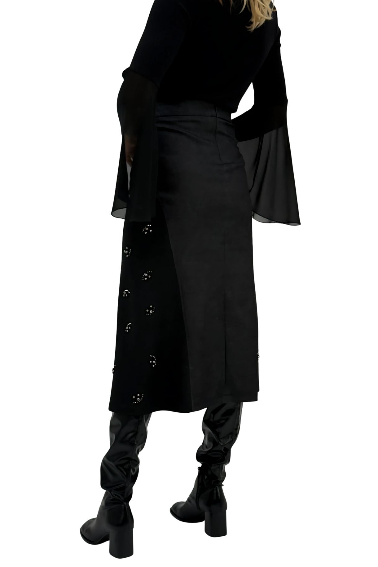 Μαύρη μακριά τζιν φούστα με κεντήματα