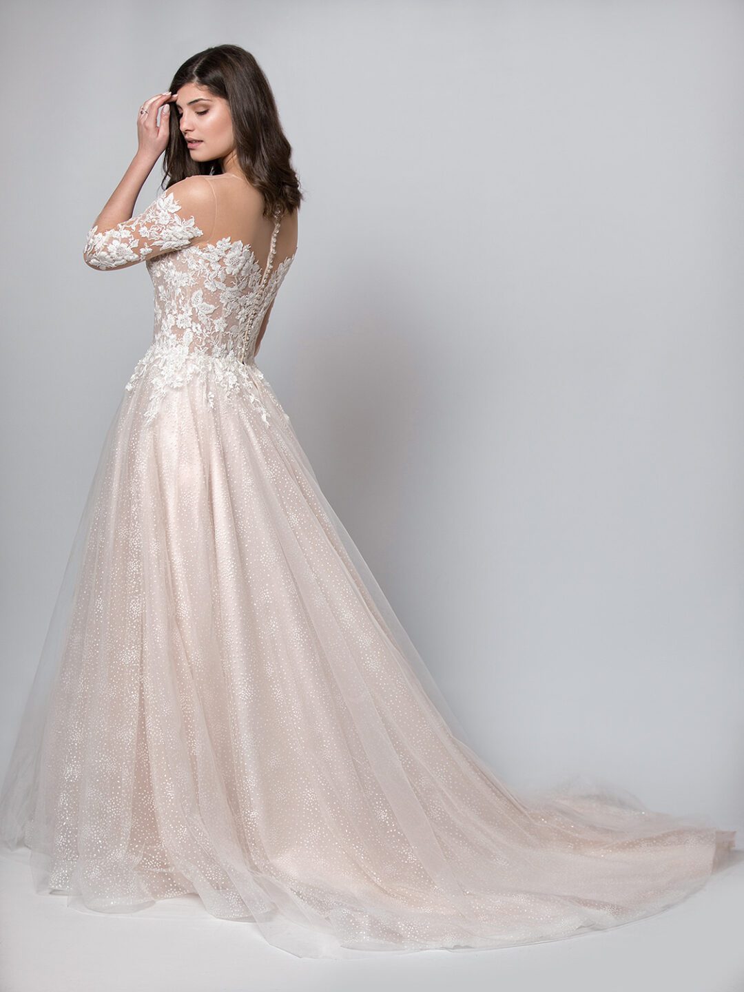 Ρομαντικό princess look νυφικό από γαλλικό τούλι στο χρώμα της πούδρας